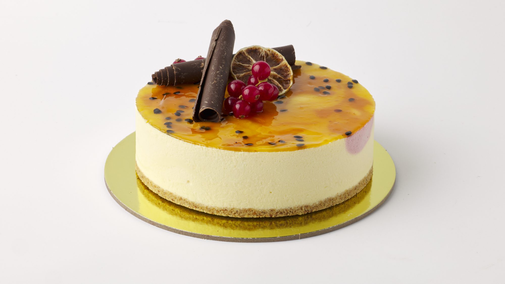 Gluteeniton kaurakeksipohja antaa kakulle miellyttävän rakenteen ja kevyen paahteisen sävyn. Täytteessä yhdistyvät vadelma ja passion-tuorejuusto marmoroituna, luoden visuaalisesti näyttävän ja makumaailmaltaan tasapainoisen kokonaisuuden.
